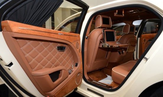 bentley-mulsanne-maj-8Interiér je chloubou, která září na sto honů. Řemeslníci si opravdu dali záležet na unikátním rozložení kabiny. Kožený interiér ve světle krémové barvě vás dostane. Luxus je prostě všude, ať už se podívat na kožené sedačky, bezpečnostní pásy z luxusní látky či dveřní panely nebo tmavé opálené rohože. Výbornou obranou jsou černé závěsy, které vám zajistí odstup od dotěrných paparazzi.