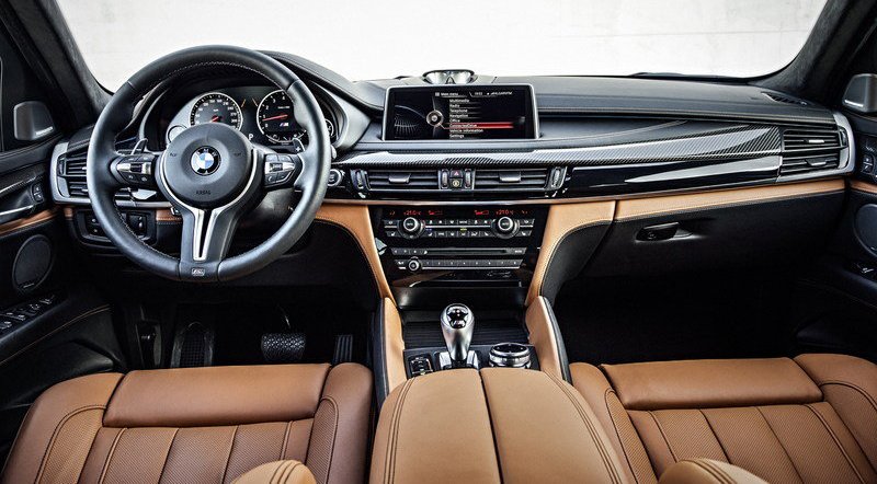Interiér pokračuje v tom, co exteriér začal. Opět se dočkáme jedinečných věcí, které vidíme u X6 M poprvé. Merino kůže s doplňkem antracit Alcantra či hliníkové detaily s kůží napa, která se vine po celé palubní desce a dveřích. Součástí kabiny jsou nejmodernějších systémy a informační technologie. Volitelný Heads-Up displej či nabušený zvukový systém jsou jen drobnou třešničkou na dortu v již tak natříškaném vozu jako je X6 M.